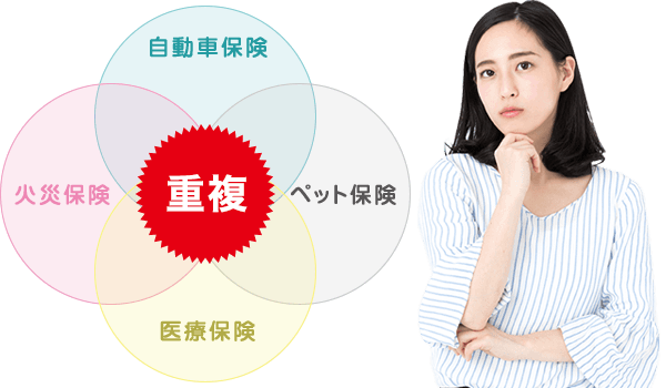このような補償は、ペットの賠償責任も補償しますので、ペット保険に賠償責任補償を付けると、保険(補償)の「重複加入」となり、保険料がムダになります。