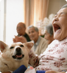 ※写真のワンちゃんは、日本のセラピードッグ第1号として活躍した名犬チロリちゃん。